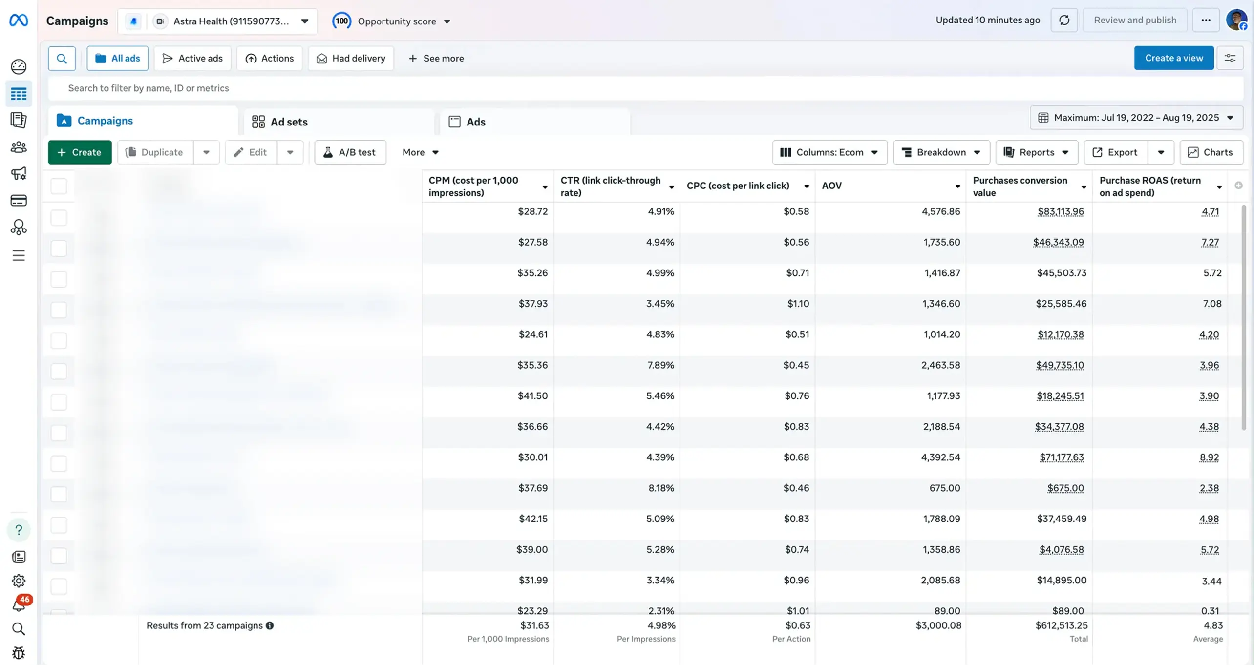 The winning combo: broad ASC, relentless creative testing, and strong Email/SMS flows.